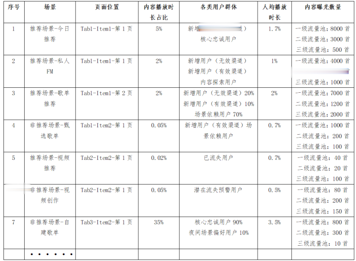 (2)执行曝光数目:一级流量池:7000首、二级流量池:1200首、三级流量池:2000首。