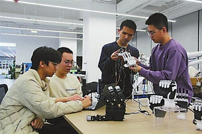 北京航空航天大学机械工程及自动化学院东谈主形机器东谈主模样制稽察班学生在进行科学盘问。学校供图