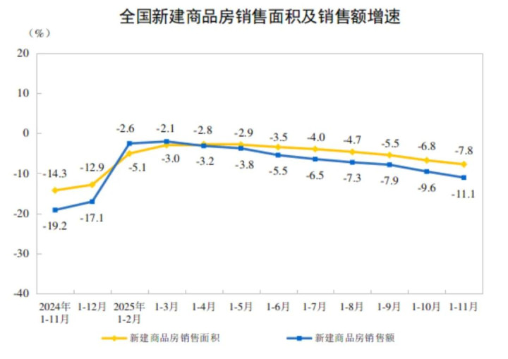 这几天,国度统计局发布了《2025年1—11月份世界房地产商场基本情况》,通过这个数据,咱们能够看到房地产商场当今举座概貌基本是什么样的。