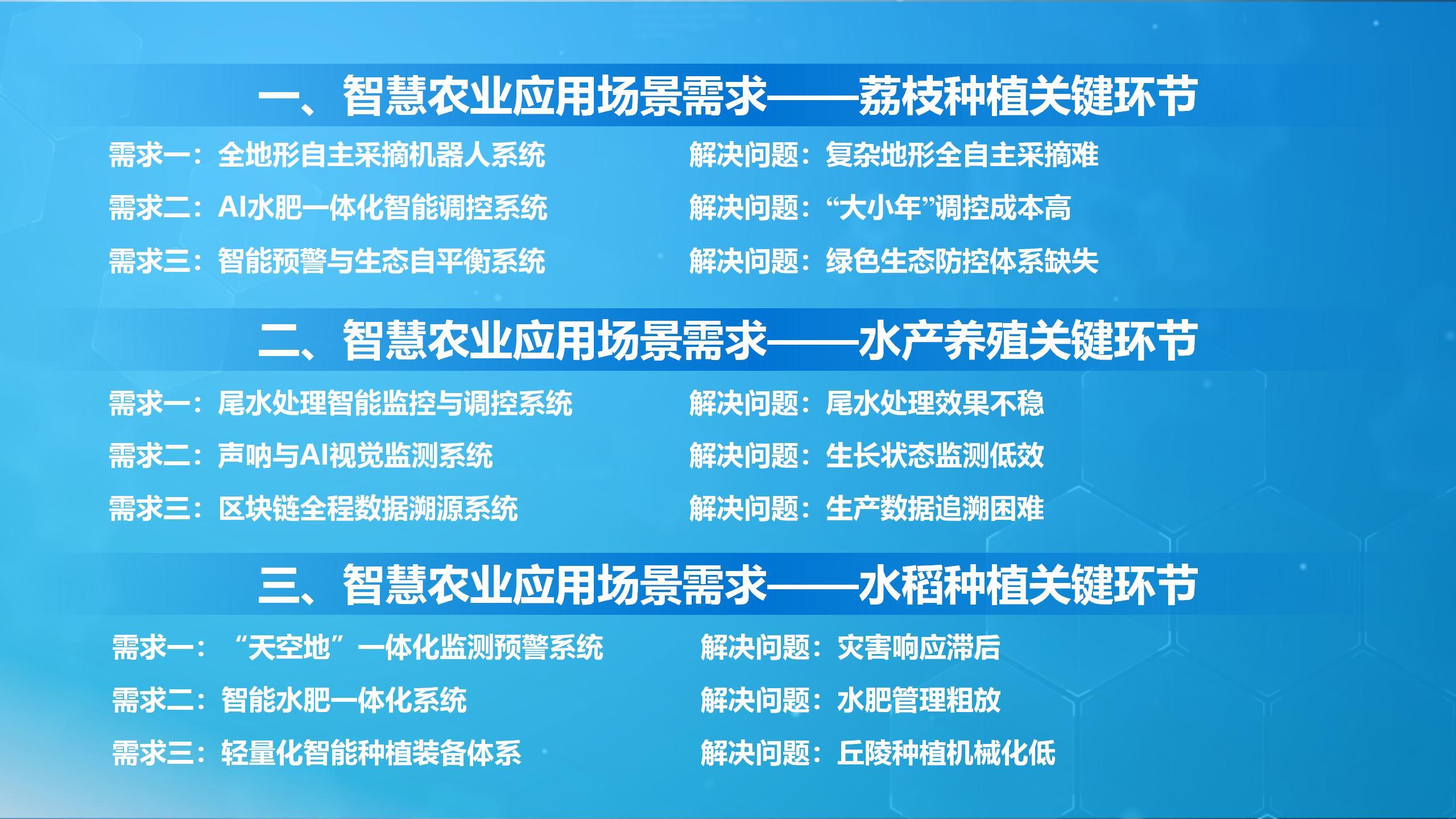 本次大会昭着体现了“场景运行”的想路。现场发布16项机灵农业典型案例,还围绕荔枝、水产、水稻三大广东特质上风产业,精确彩选了9项要道要领的机灵农业诈欺场景需求清单。